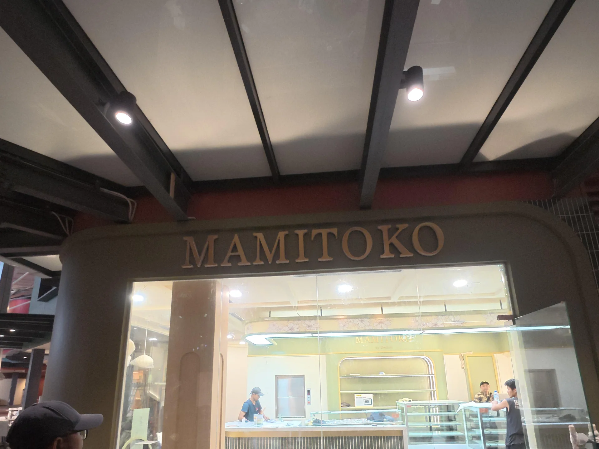 Identitas visual pada outlet Mamitoko mengusung konsep elegan kontemporer dengan penggunaan signage berupa huruf timbul berbahan logam dengan finishing Brass atau Gold Satin. Tipografi yang digunakan tampil minimalis namun mewah, dipertegas oleh pencahayaan spotlight eksternal yang menciptakan dimensi bayangan pada fasad. Kesan premium diperkuat melalui kombinasi material interior yang kontras namun harmonis; penggunaan panel dinding berwarna Olive Green berpadu apik dengan aksen list logam berwarna emas pada bingkai etalase dan area rak pajang.